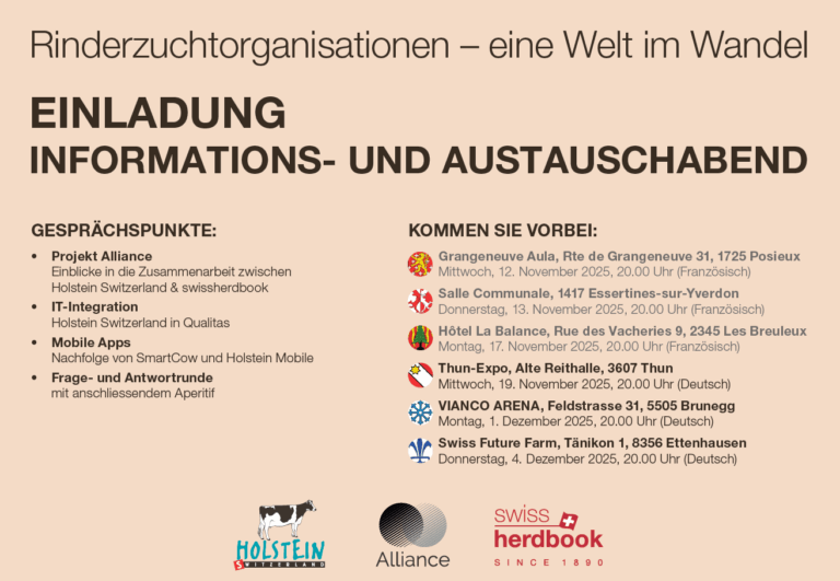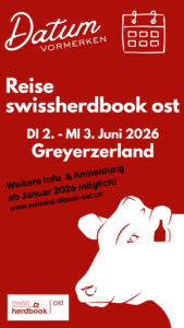 Willkommen bei swissherdbook ost Ihr Zuchtverband zur Förderung und Weiterentwicklung der Rinderzucht in der Ostschweiz! Aktuelles von uns swissherdbook ost Fachreise Greyerzerland DI 2. bis MI 3. Juni 2026 Alliance Informations- & Austauschabend «Rinderzuchtorganisationen – eine Welt im Wandel»